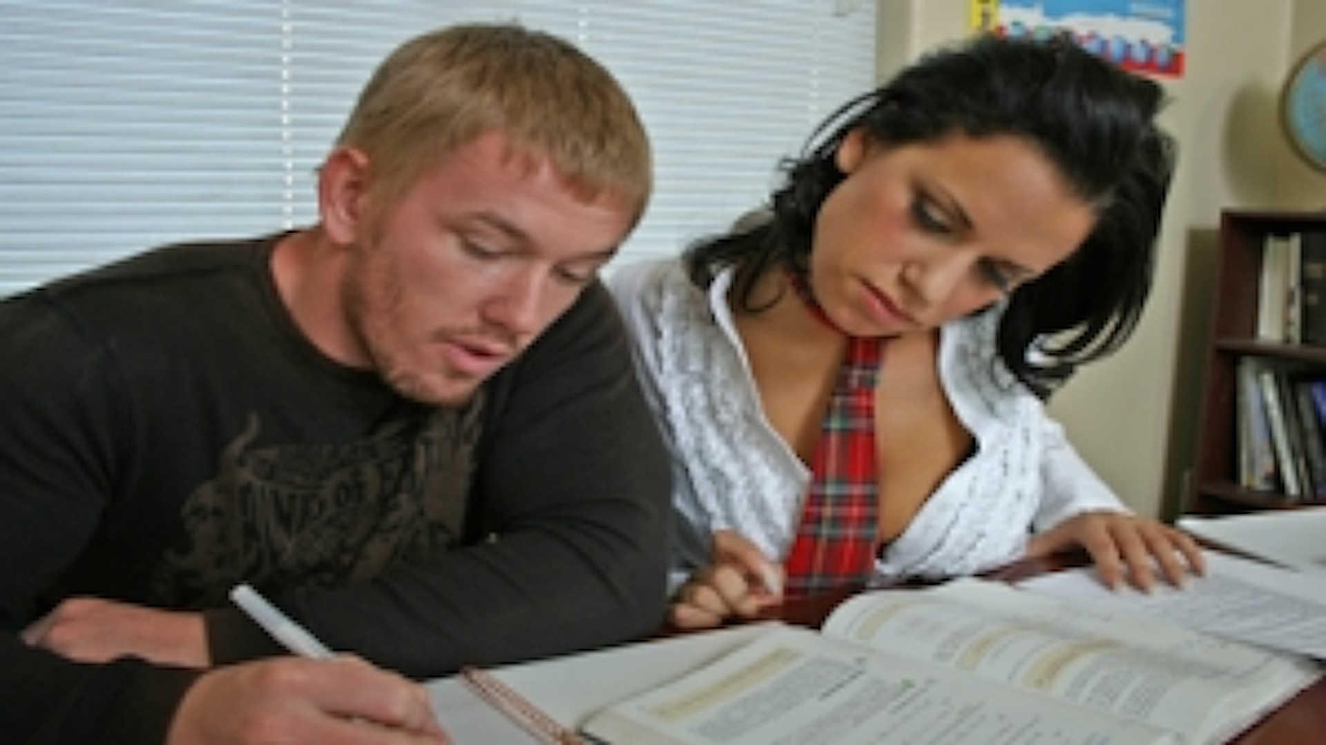 Mia chose Jack to help her study because she heard that he hooked up with a girl at a party over the weekend and was great at having sex! As one of the school sluts, this was something Mia had to witness for herself...