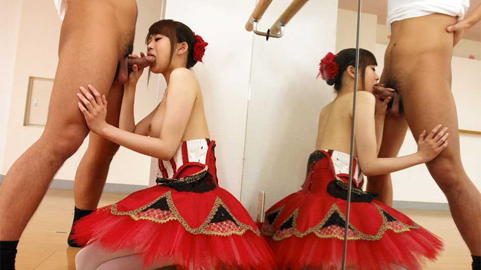 Petite ballerina, Ririka Suzuki was doing her regular warm- up and stretching while she was waiting for her partner in an empty studio. They were supposed to have a rehearsal off the schedule, because both of them wanted to make sure that their performance gets as perfect as possible. Once her partner showed up, she went to the locker room to change in her dancing outfit, while he was warming up. When he saw her in her red dress, he got very distracted and it all seemed like he got horny. To make sure that they do their job properly, Ririka got down on her knees in front of him and started sucking his dick, because once he cums, he will be focused on dancing part.