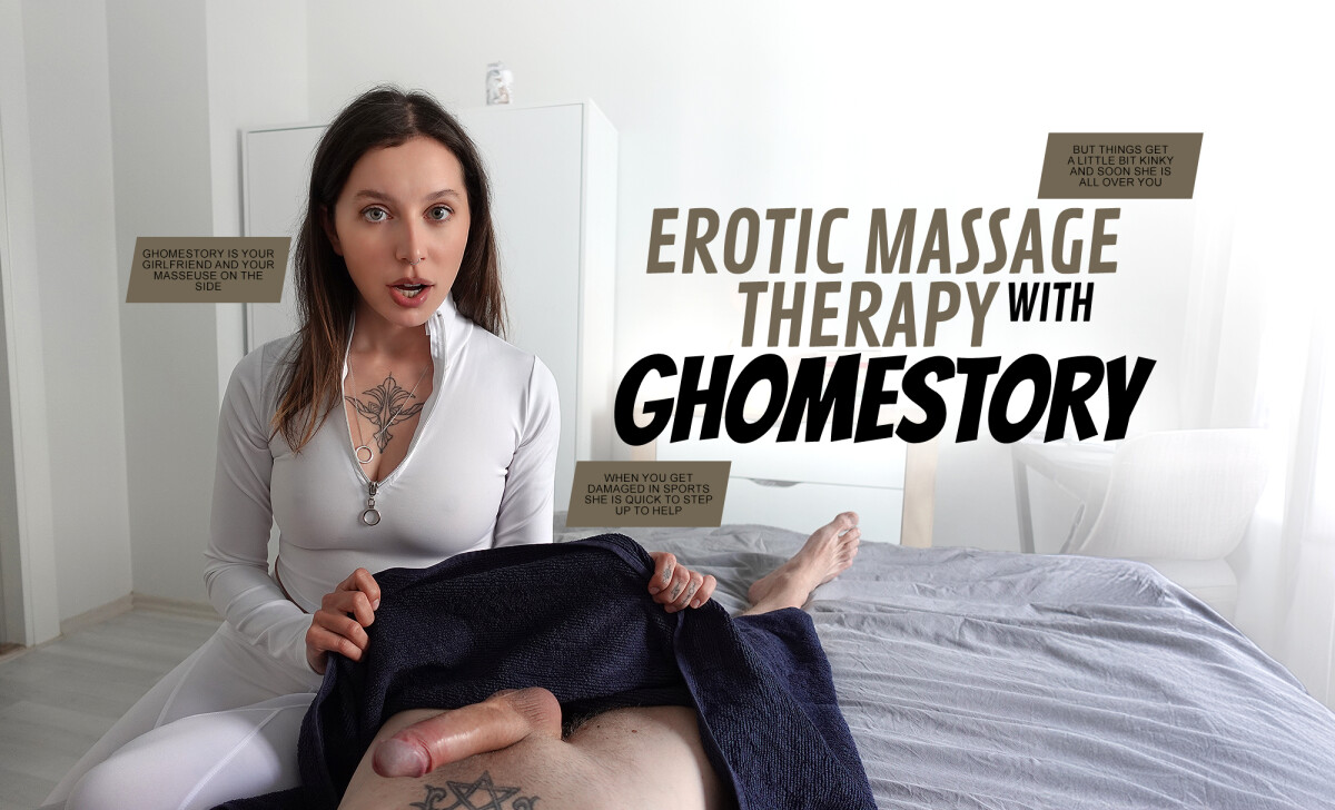 Your girlfriend, Ghomestory, is an amateur masseuse, so when you get injured on the sports field, she's there to help. But her nimble fingers only excite you, so it's no surprise you get hard as a rock. And that certainly means Ghomestory will be satisfied time and time again. But what tricks do you use to get your girlfriend to sleep with you? It's up to you!