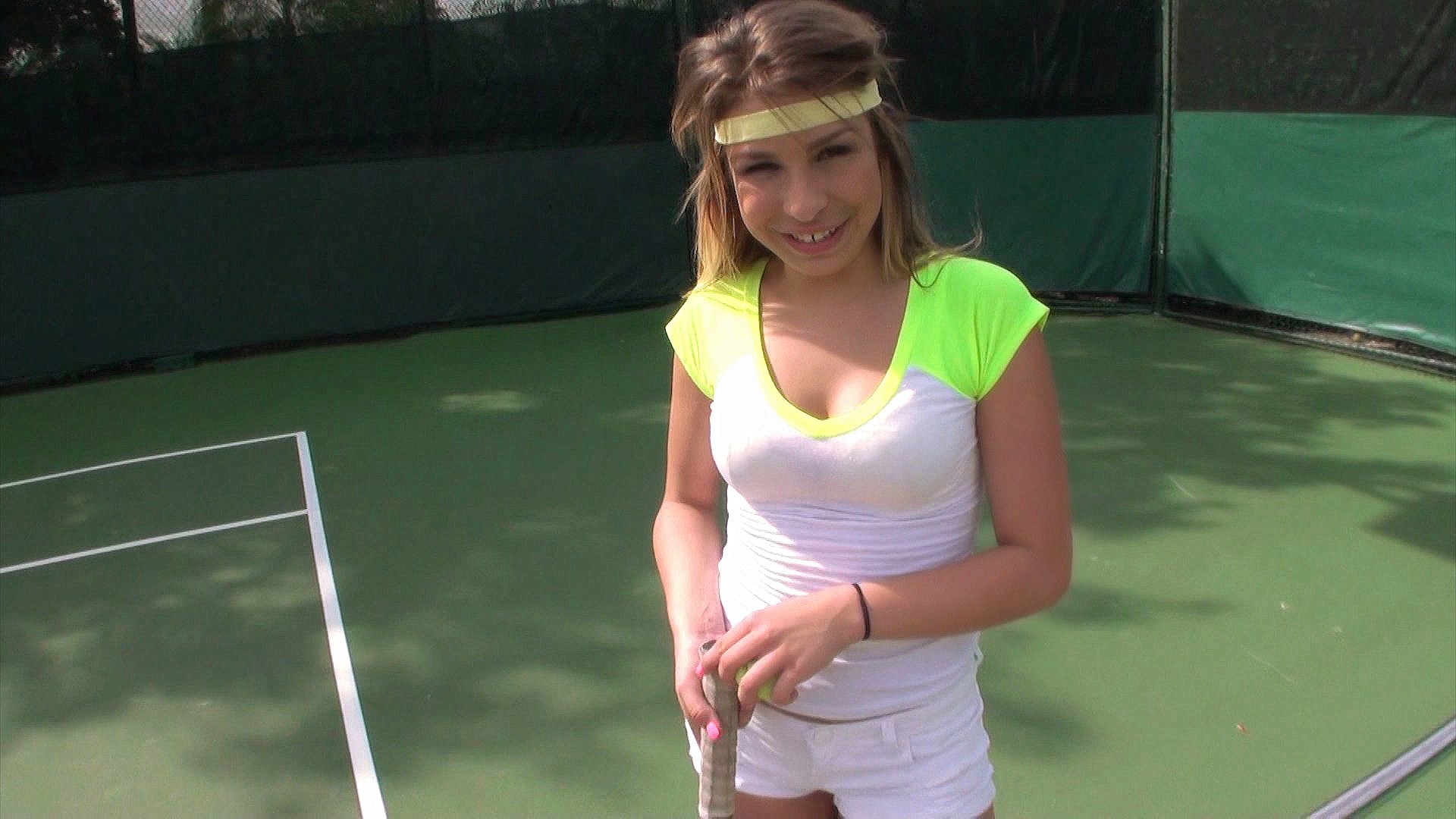Dude couldn't watch that hot slut Carmen Caliente swatting balls on the tennis court without running somewhere private to get into trouble. They hurried to the men's change-room, and jumped in the shower so he could tap Carmen's sweet bubble butt.