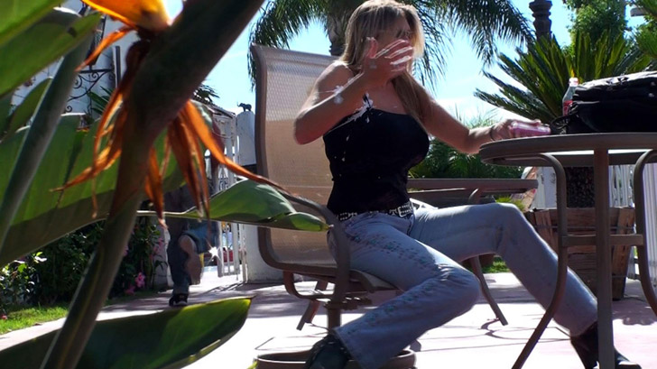 We stalked and followed this bitch around for a while until she sat down. She is completely stupid and never noticed us until we shot some cum onto her!