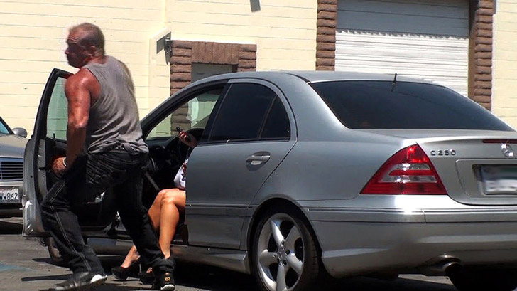 This blonde bitch was sitting in an empty parking lot talking on her cell phone. I got myself hard, and did a run-by jerk off on her amazing huge tits!