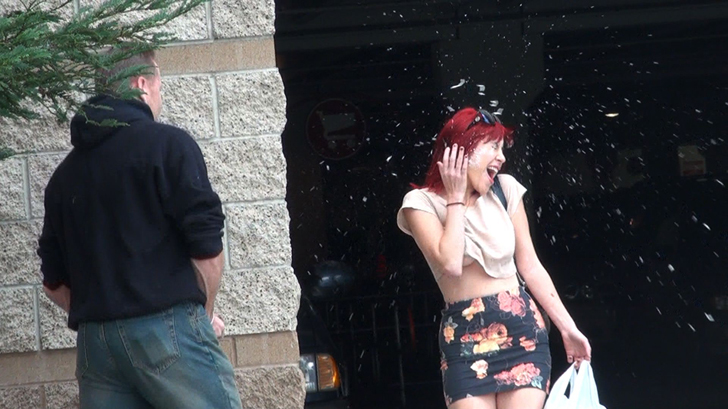 Sasha Sweet was minding her own business out shopping. She didn't know that she was going to get splashed with some gooey, sticky cum all over her face!
