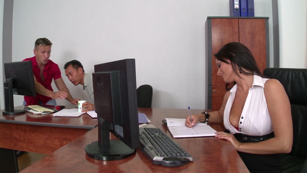 Choky Ice and Keni Styles decide to celebrate a huge business success with champagne--and blowjobs from their busty colleague Sheila Grant! Faster than you can say were all millionaires! Sheila is down on her knees between the huge dicks, slurping them hard while the guys cop feels of that 36D cleavage and give her some titty fucking into the bargain. Thrill to Sheilas top shelf cock sucking as she moves her mouth from prick to prick, and gives some good balls licking as well. Happily, she watches US in the audience most of the time, so we can feel were at this oral party too! These sexy blowjob pics wind up with two big creamy loads all over Sheilas tongue and lovely titties.