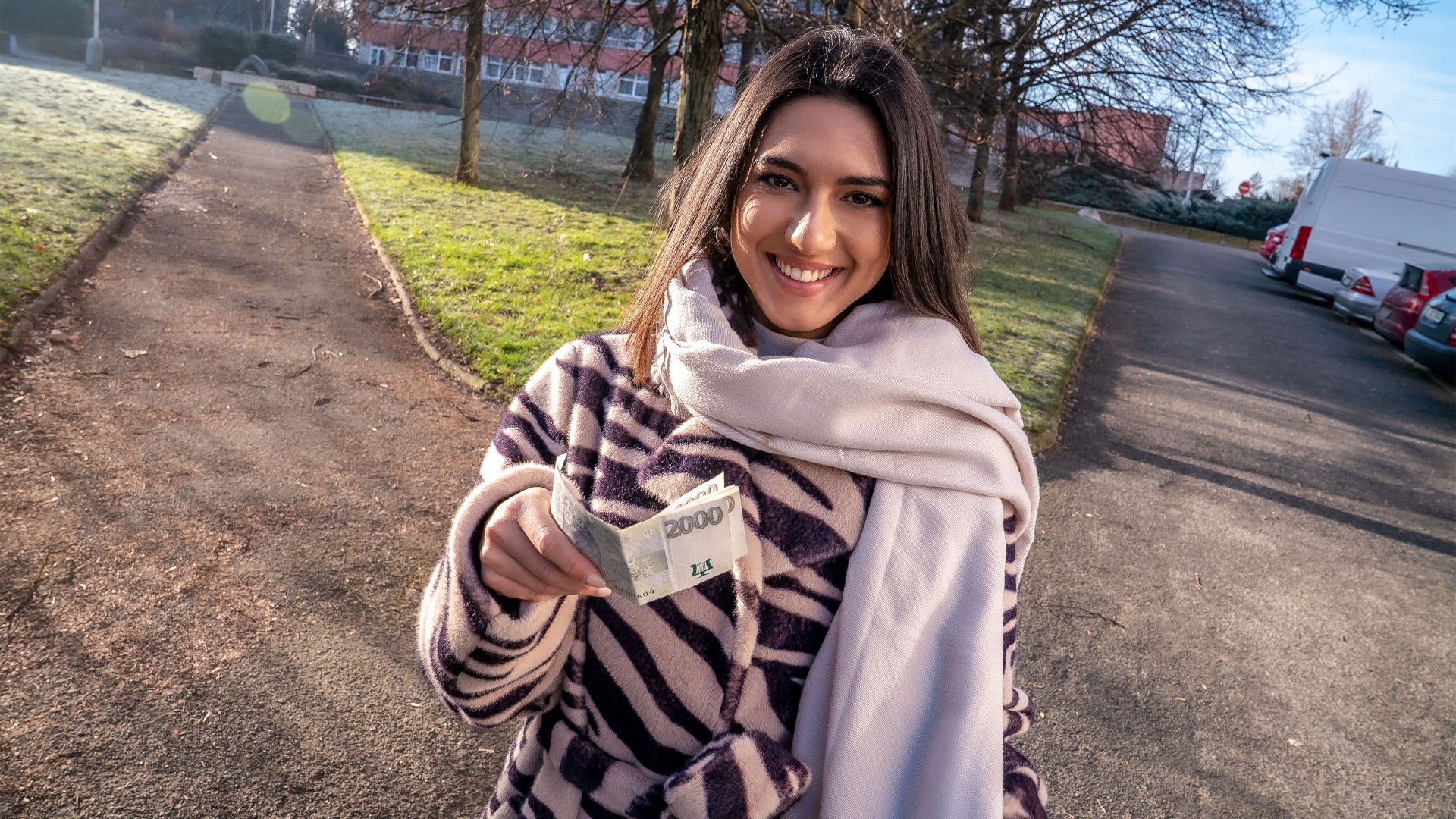It was a cold day in Prague when I bumped into a beautiful French woman named Lena Coxx. After introducing myself, I asked Lena if she would be interested in doing some modelling work for cash. The stunning brunette agreed to follow me to my studio, where she stripped off and showed me her sexy tats! I was getting turned on by Lena’s hot body, so I offered the busty babe more euros for a blowjob. Being a student, Lena didn’t need much persuading, and she dropped to her knees and started sucking me off! Wrapping her luscious lips around my thick dick was making Lena horny, so she spread her legs and invited me to fuck her in missionary position. With her pierced nipples on display, the slim hottie jumped on my cock to ride it cowgirl-style before sticking out her curvy ass and taking a doggystyle pounding. Once her pussy was satisfied, Lena wanked me off until I came all over her tongue, and then she swallowed it!
