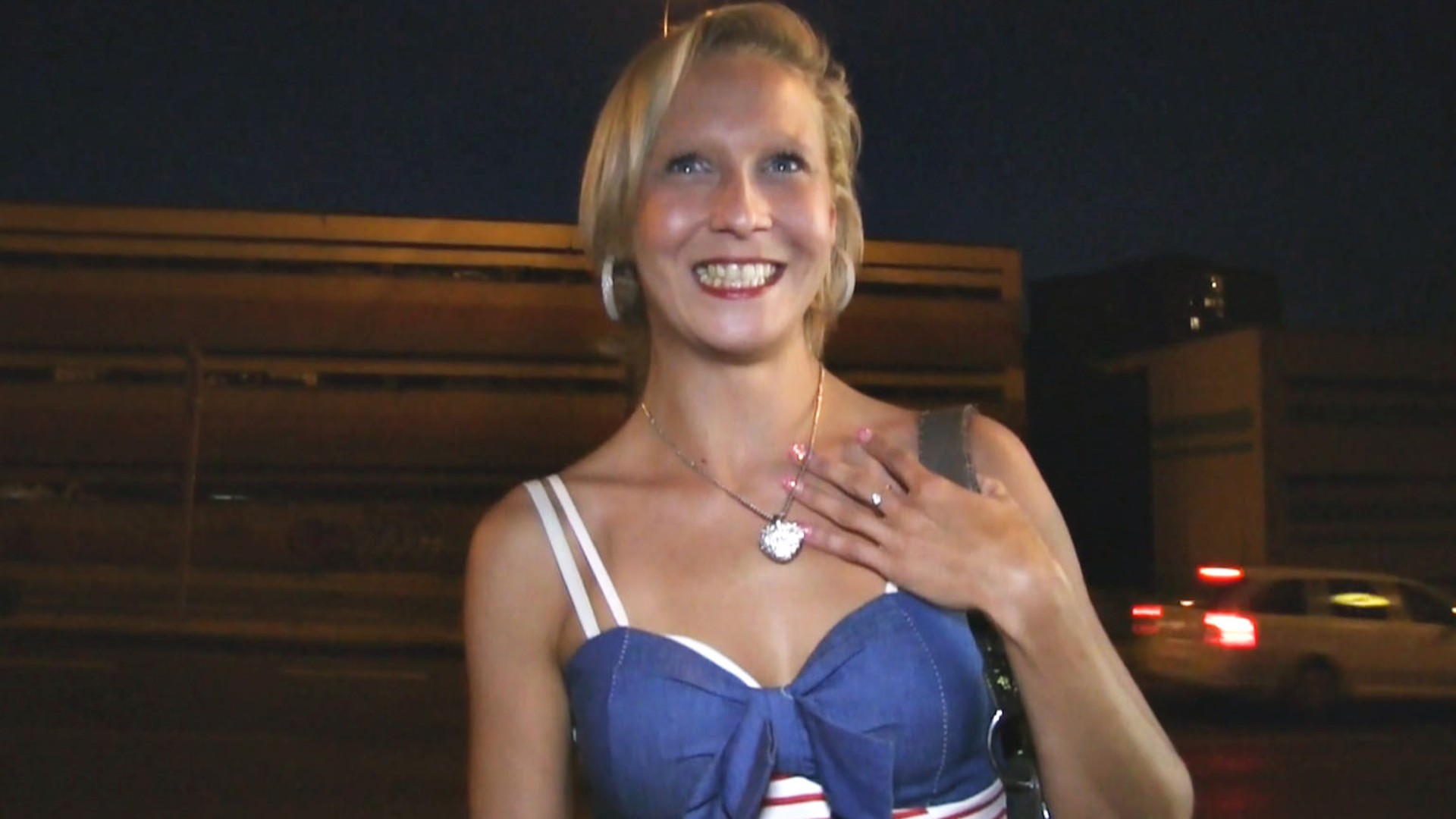 I thought this short haired blonde had a fantastic figure from behind. I quickly caught up with her and gave her my bullshit story about being a modelling agent. She fell for my story very quickly and agreed to come with me so she could show me her figure. We found a spot by the side of the road where nobody could see us. There was a lot of traffic on the road so she was a little nervous about taking off her clothes in public. When she dropped her dress she exposed a fantastic figure. Her ass cheeks looked amazing in a tight white thong. My cock was aching to fuck her. I offered her a bundle of extra cash, and she will fully bent over for my big cock to slide in to her pussy.