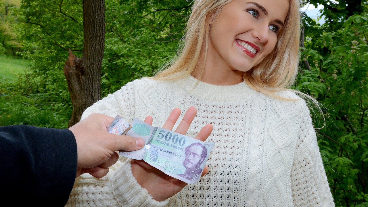 Aisha didn't expect to be flashing her tits in public when she started the day, but a fist full of cash is always a good lubricant. Wet at the site of those bills, this blonde hottie pulls down her g-string and shows off those pink pussy lips.