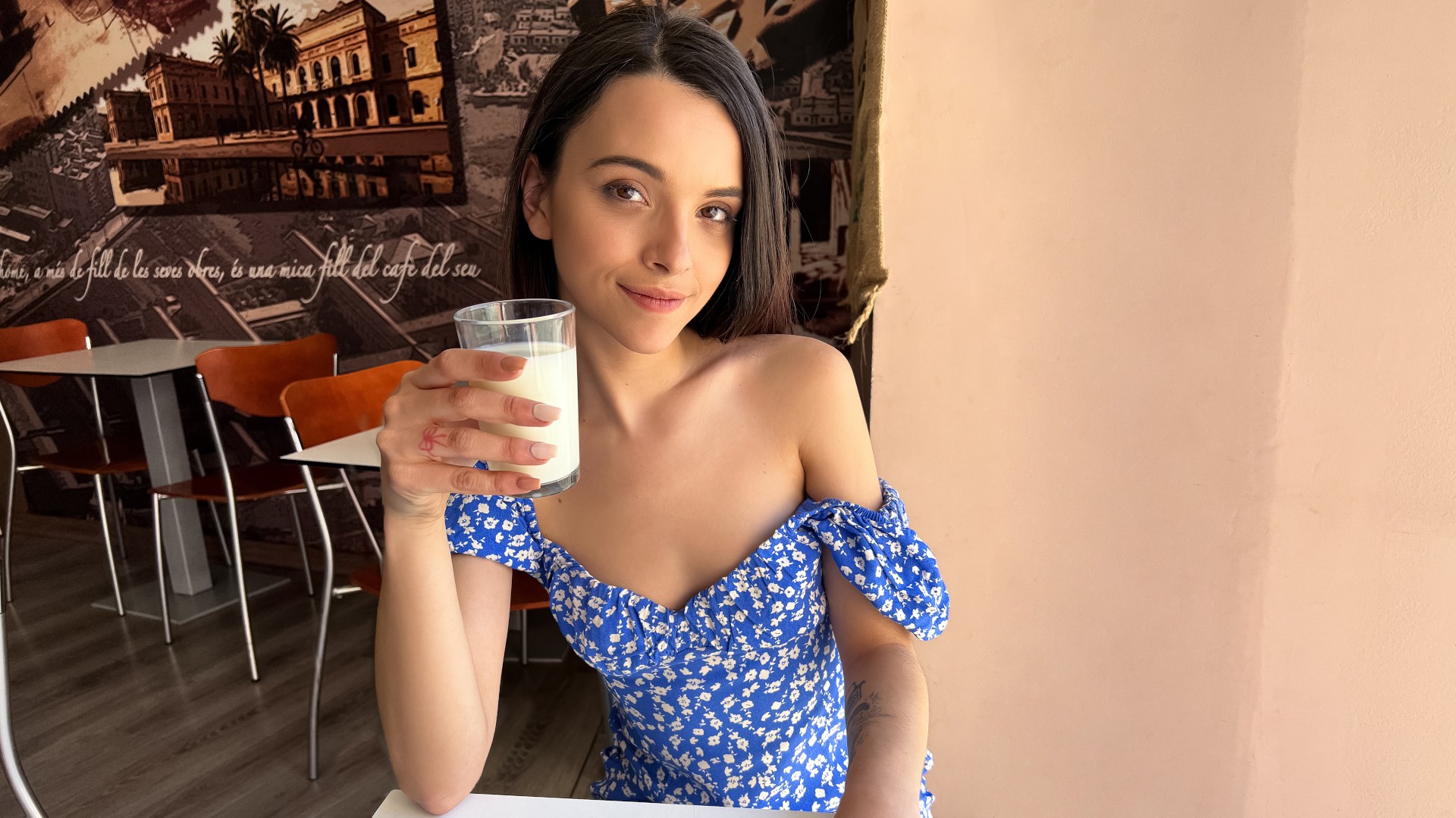 Glasses babe Ohana Petite looks quiet, but she shows Jordi El Nino Polla her pussy at the cafe and makes him horny!