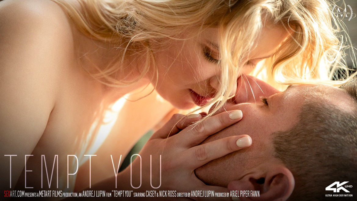 Gorgeous blonde Casey is irresistible in a sexy black dress, dancing for Nick Ross, as Andrej Lupin’s erotic movie "Tempt You" begins. She rocks her hips, wiggling her ass and caressing her beautiful breasts as Nick watches appreciatively. When Casey joins Nick on the sofa, he kisses her passionately and lavishes attention on her stiff nipples as he undresses her. She straddles his face to get her pussy licked, then unzips his jeans and sucks his rigid cock eagerly. Moving astride him, Casey impales herself on his thick shaft and rides it vigorously, breasts bouncing and ass cheeks rippling as she slides up and down until she’s overwhelmed by an intense orgasm. She turns around into reverse cowgirl, fucking herself on Nick’s erection and climaxing again before they switch to missionary. Now Nick takes control, gazing into Casey’s eyes as he thrusts into her; they move into spoons so she can rub her clit as he makes her orgasm again and again. Her final climax triggers his own, and he fills her pussy with hot cum that trickles out as they lie wrapped in each other’s arms.