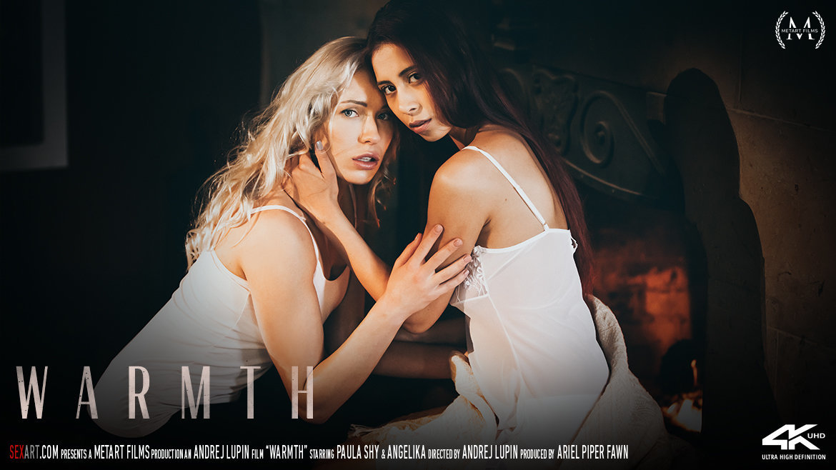 Wrapped in a blanket, busty Asian beauty Paula Shy sits shivering by the fire, as Andrej Lupin’s erotic movie "Warmth" begins. Her face lights up with a delighted smile as sexy blonde Angelika brings her a hot drink, and some even hotter kisses. They start gently, caressing each other with tender touches, growing passionate as Paula pulls her girlfriend’s top down to suck her beautiful breasts. When Angelika’s nipples are hard as diamonds, Paula peels off her tight yoga pants and goes down to lick her shaved pussy, the lips opening like butterfly wings as her skilful tongue explores. Thrusting her fingers into Angelika’s tight slit, Paula drives her to an intense orgasm. The breathless blonde moves to her knees to ride her sweetheart’s fingers harder, cumming again, then spreads Paula’s thighs wide to eat her gorgeous pussy. She licks and frigs the stunning brunette to a powerful climax, then lies back so Paula can straddle her face and grind to another orgasm. Naked and satiated, it’s the "Warmth" of their mutual ardor that keeps these lovers red hot.